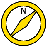 - Line Icon: A compass. (And yes the compass is pointing in the correct direction: since the needle always points north, if you’re heading northwest, this is what the compass should look like.)
